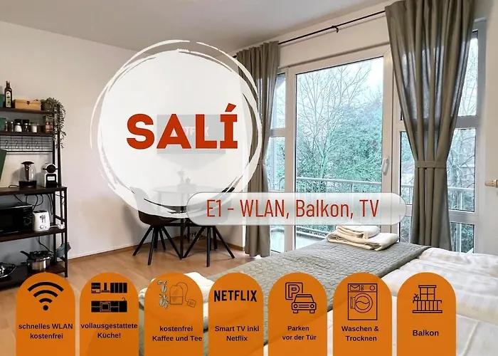 Sali - Essen - Studioapartments设有大厨房和配咖啡机/煮茶机,休息区 和电视的客房. 公寓距离关税同盟煤矿工业建筑群有3公里,格里洛剧院有2.7公里,地理位置十分便利.